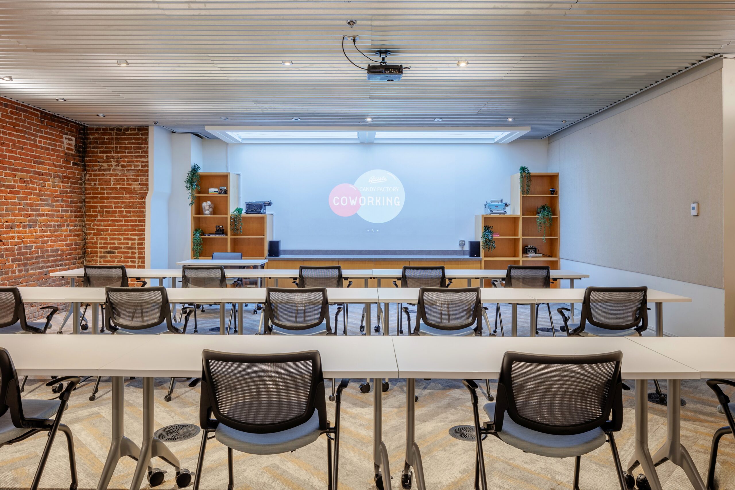 Our meeting and conference rooms offer spacious amenities that impress clients and employees alike. Let us host your next event, training, or meeting at Candy Factory Coworking! Whether you’re a small business, large business looking for remote options, individual looking for community, or student, we’ve got options that hit the sweet spot.